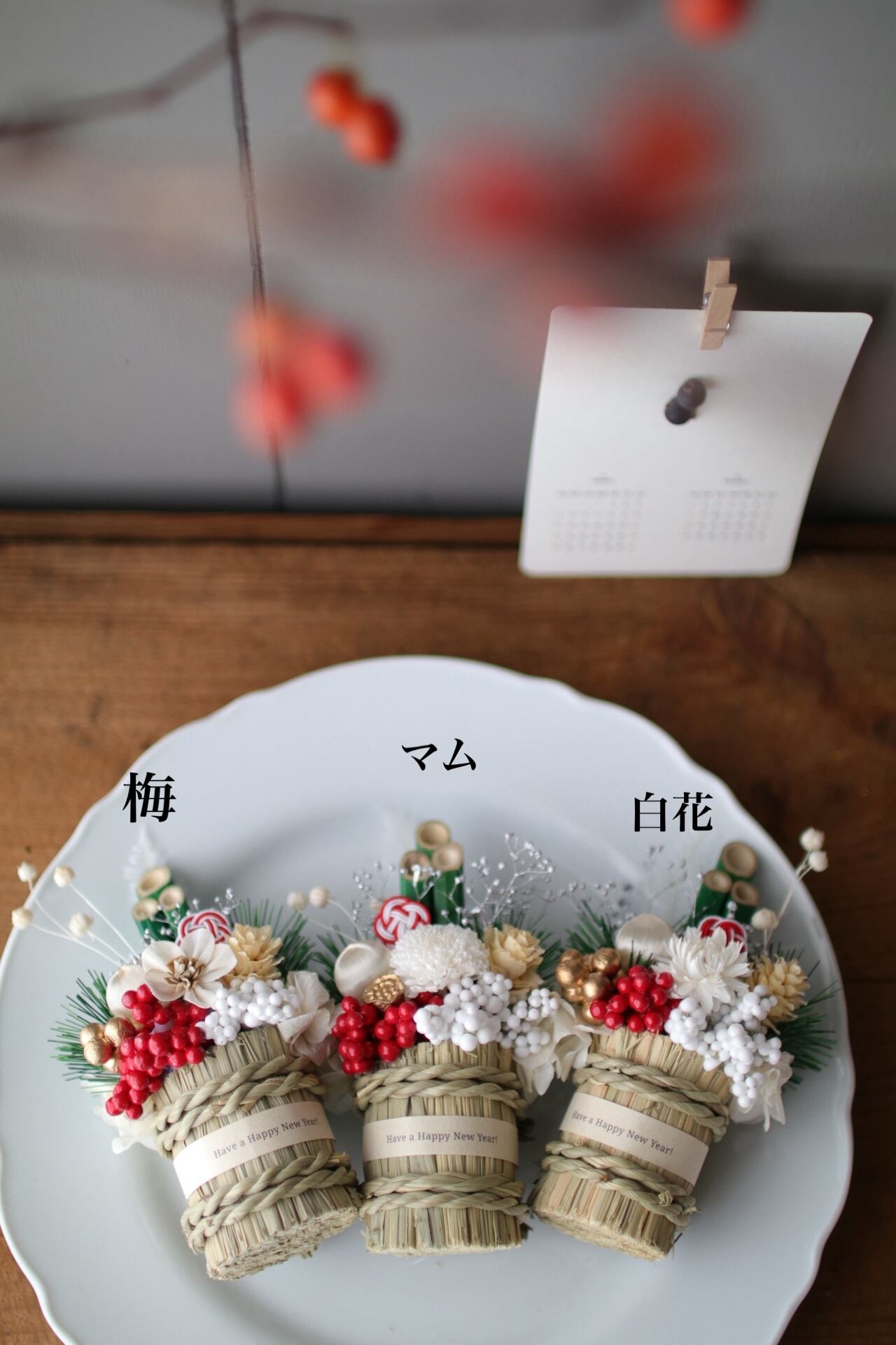 花はマム、梅、白花の3種類